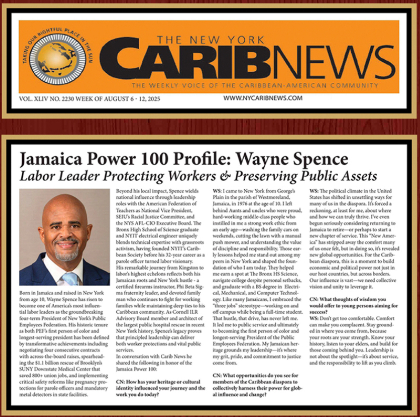 The New York CaribNews honored President Spence as one of its Jamaica Power 100 and named him one of the country’s top labor leaders. Read the article here.